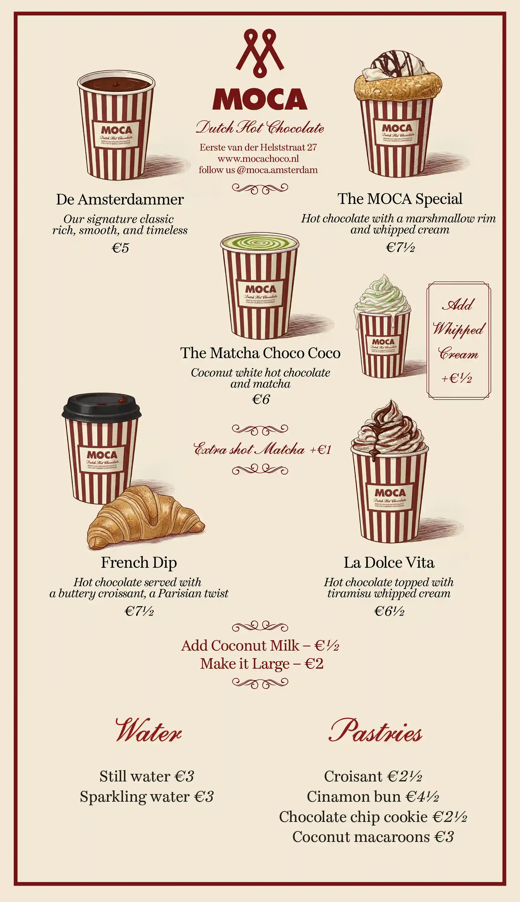 Our story began on a cold day at the Albert Cuyp Market in Amsterdam, where the need for a truly good cup of hot chocolate inspired the idea for MOCA. Now, we opened a little take-away boutique in the Pijp. Come visit us and tell us which is your favourite Dutch Hot Chocolate. See you soon!